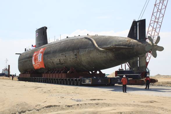 : Land and Sea Transport of Agosta Submarine : from Malacca Anchorage to Malacca ECO Park Temporary Jetty